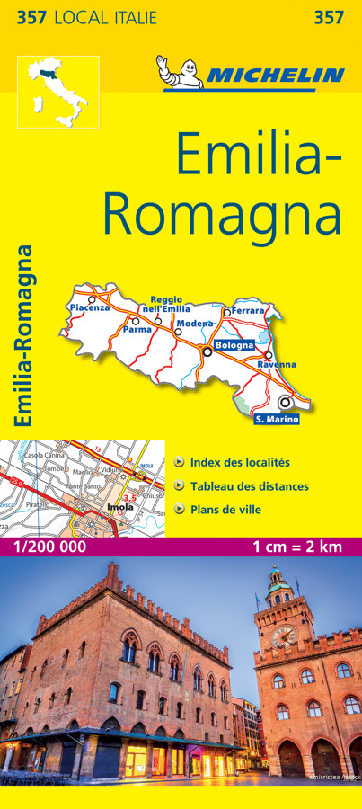 Met een schaal van 1/200 000 oftewel 1 cm = 2 km en reliëf van satellietbeeld biedt de Michelin LOCAL kaart Emilia-Romagna u een exact beeld van de topografie. Dankzij de aangeraden toeristische trajecten laat ze u toe om alle rijkdom en plaatselijke bezienswaardigheden grondig te verkennen en de mooiste toeristische sites te ontdekken, uitgekozen en aangeduid door Michelin. Om u beter te verplaatsen kan u de plaatsenindex, de afstanden- en tijdtabellen en de stadsplattegronden gebruiken.